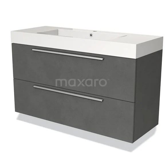 Modulo Vanity units with basin | 120 cm Dark grey concrete Flat front Mineral marble 2 Stacked drawers