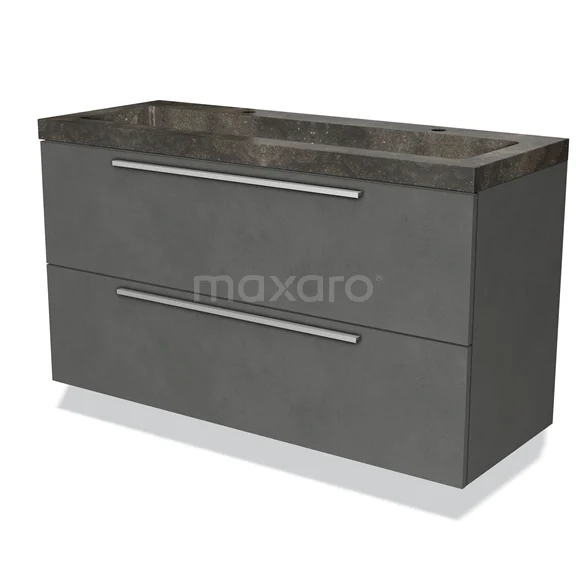 Modulo Vanity units with basin | 120 cm Dark grey concrete Flat front Natural stone 2 Stacked drawers