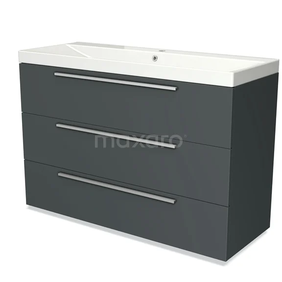 Modulo Vanity units with basin | 120 cm Dark grey Flat front Ceramic 3 drawers