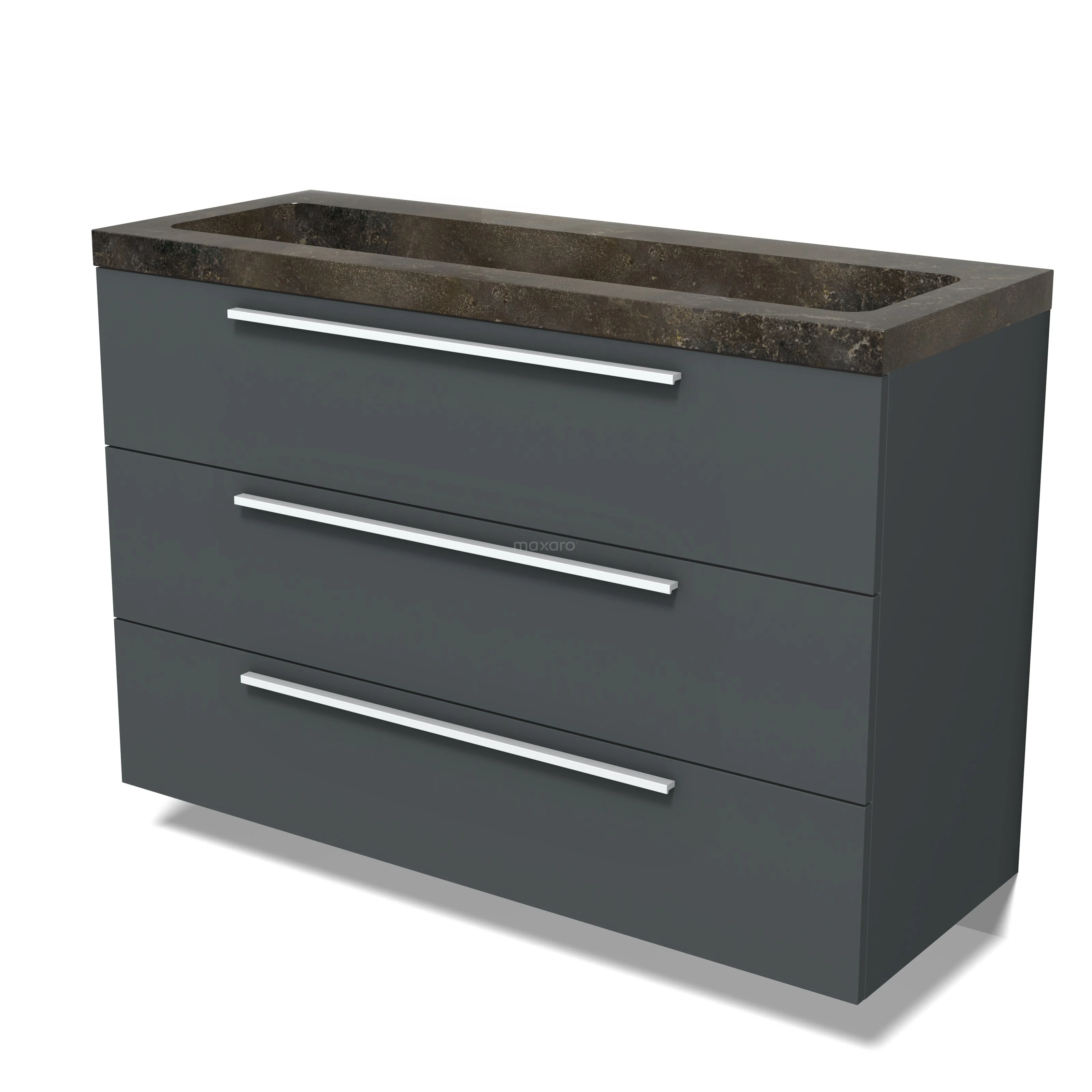 Modulo Vanity units with basin | 120 cm Dark grey Flat front Natural stone 3 drawers