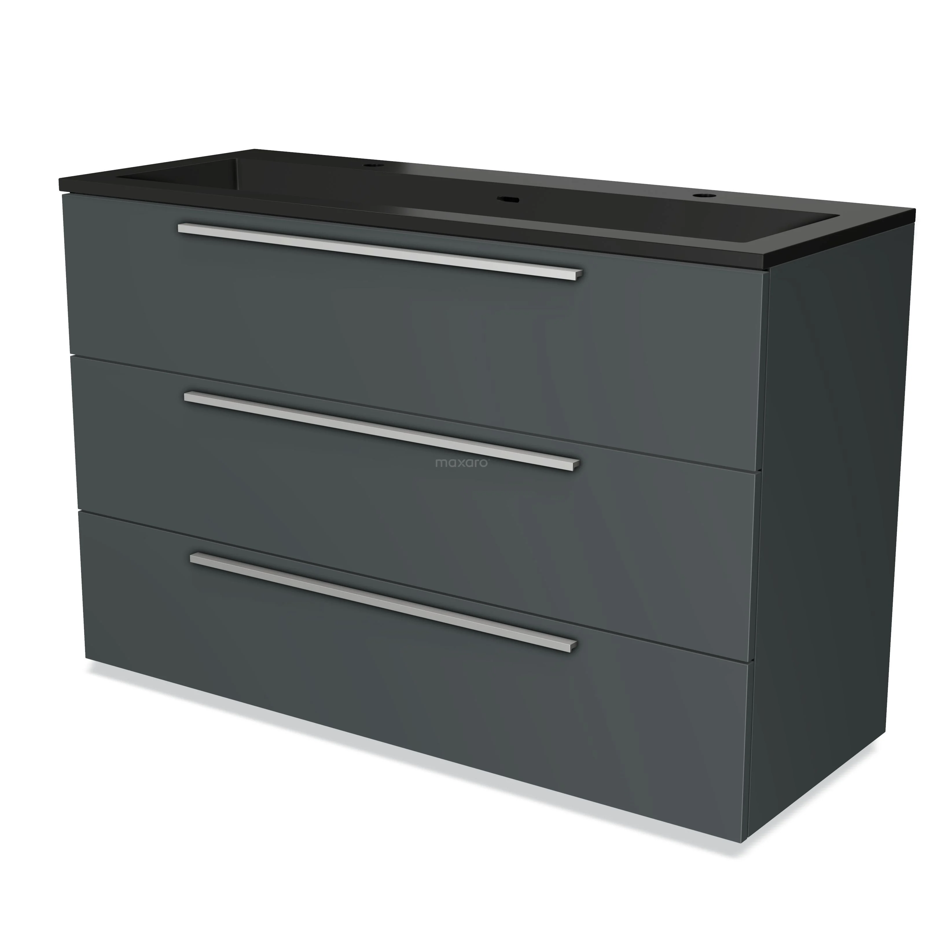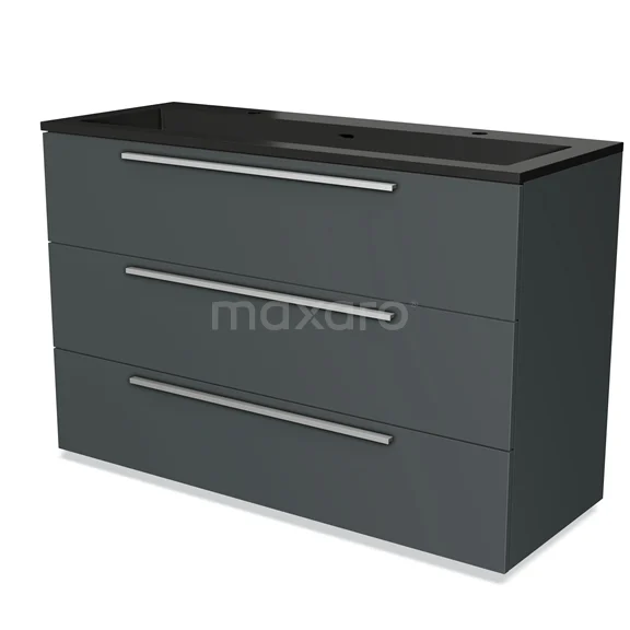 Modulo Vanity units with basin | 120 cm Dark grey Flat front Quartz 3 drawers