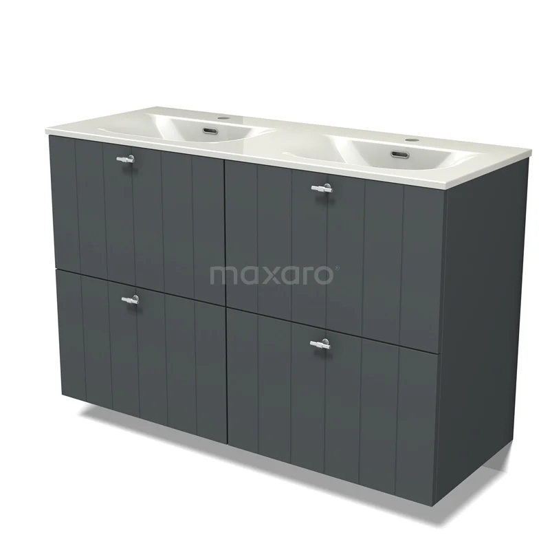 Modulo Vanity units with basin | 120 cm Dark grey Slat front Ceramic 4 high drawers