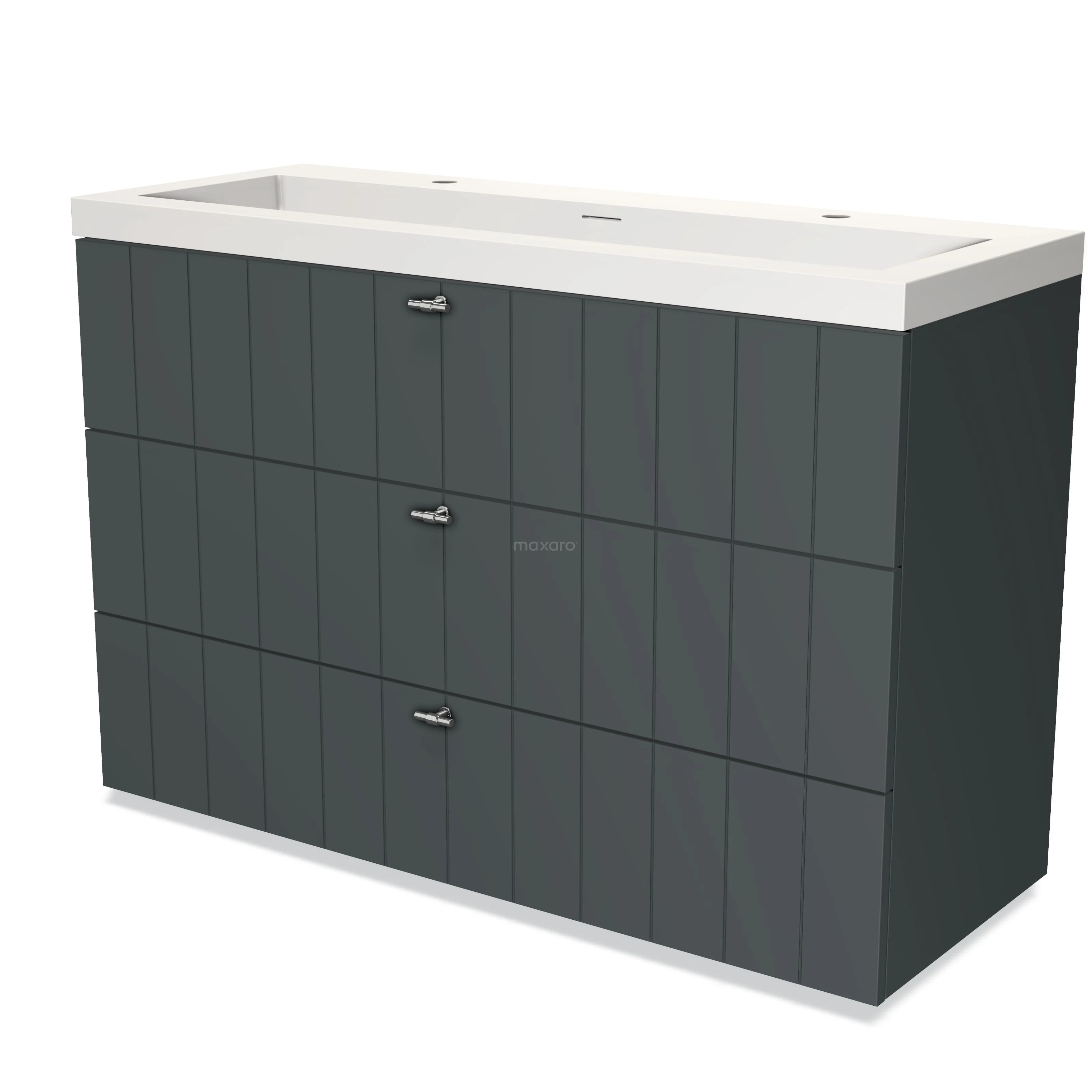 Modulo Vanity units with basin | 120 cm Dark grey Slat front Solid surface 3 drawers