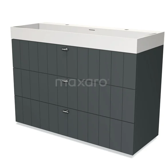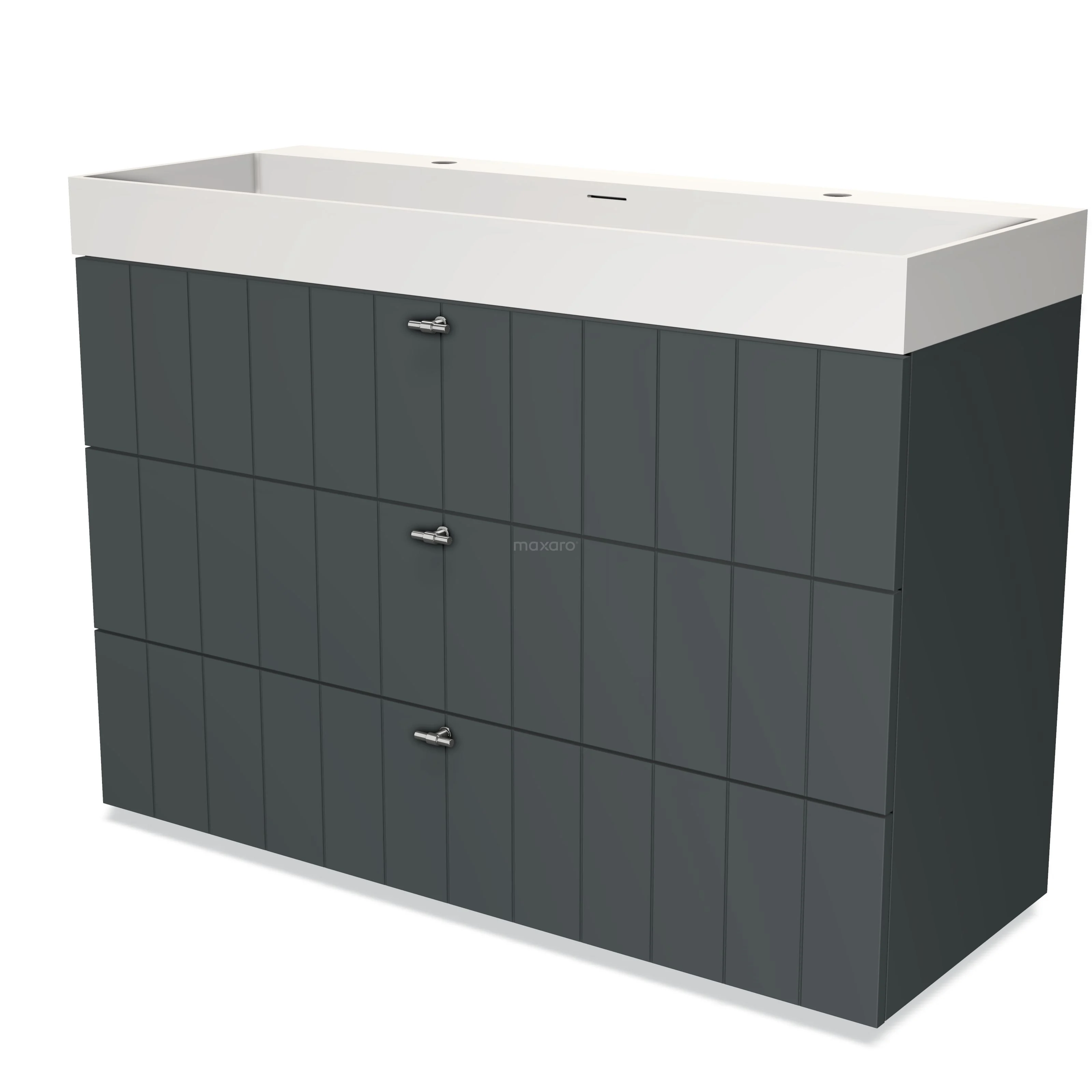 Modulo Vanity units with basin | 120 cm Dark grey Slat front Solid surface 3 drawers