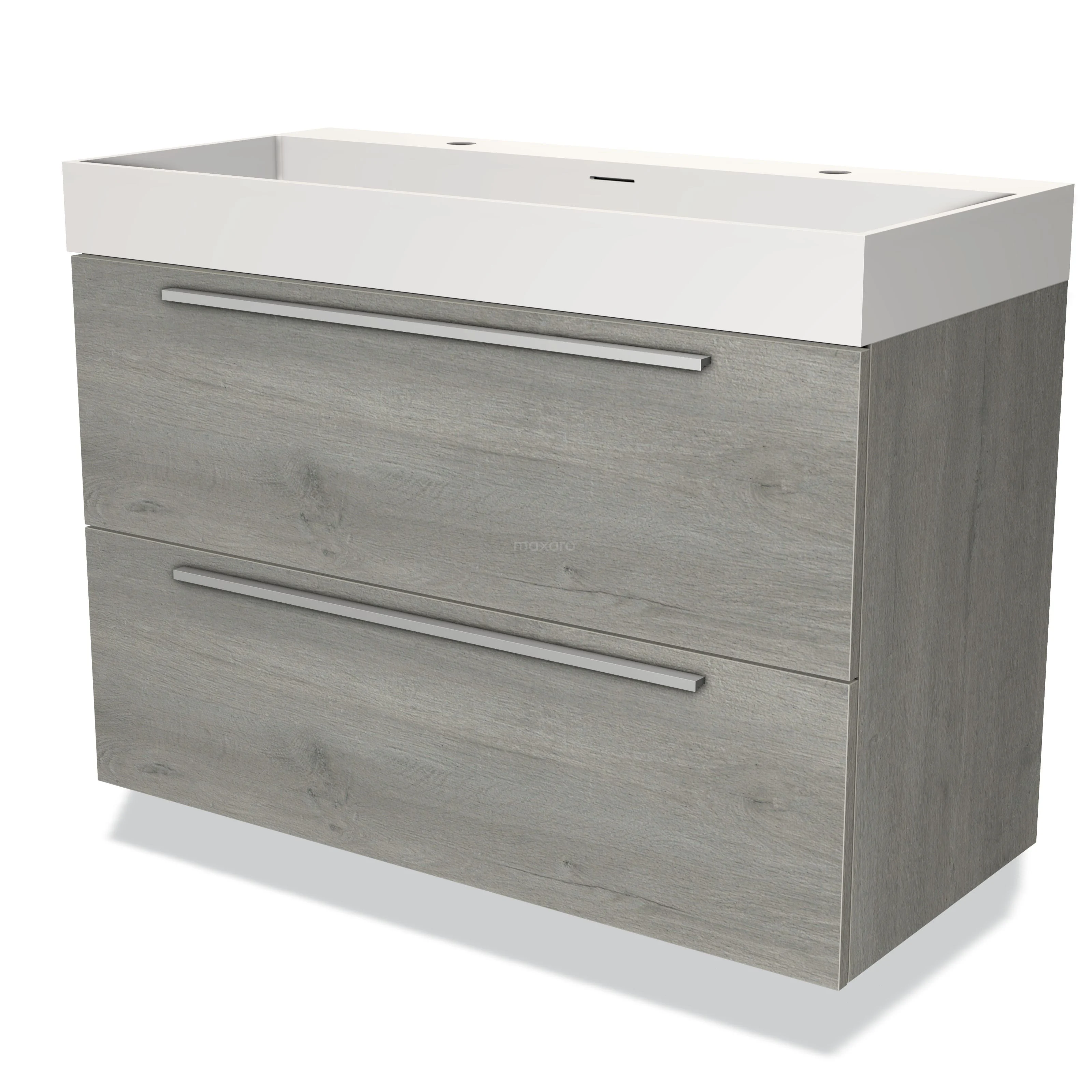 Modulo Vanity units with basin | 120 cm Grey oak Flat front Solid surface 2 Stacked drawers