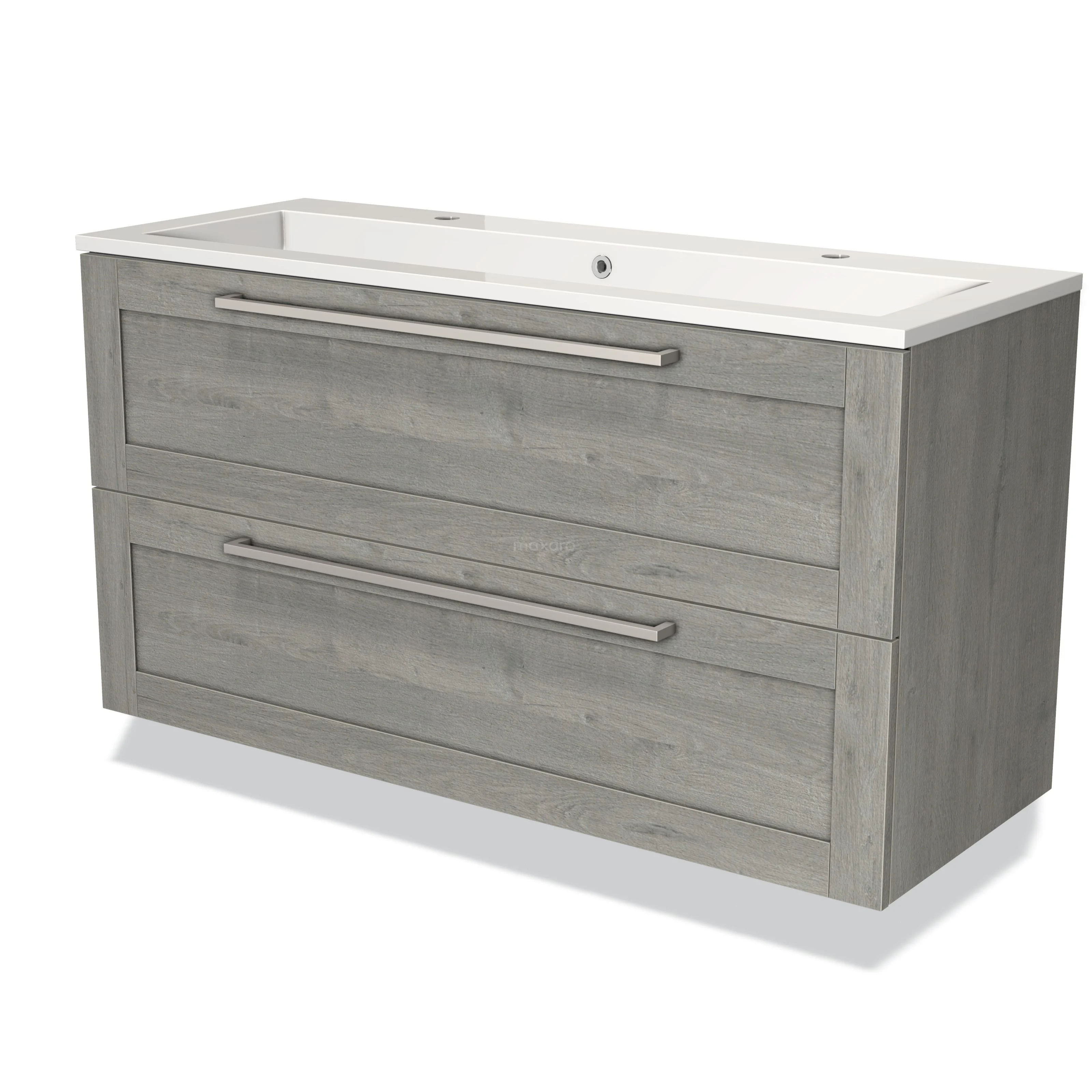 Modulo Vanity units with basin | 120 cm Grey oak Frame front Mineral marble 2 Stacked drawers