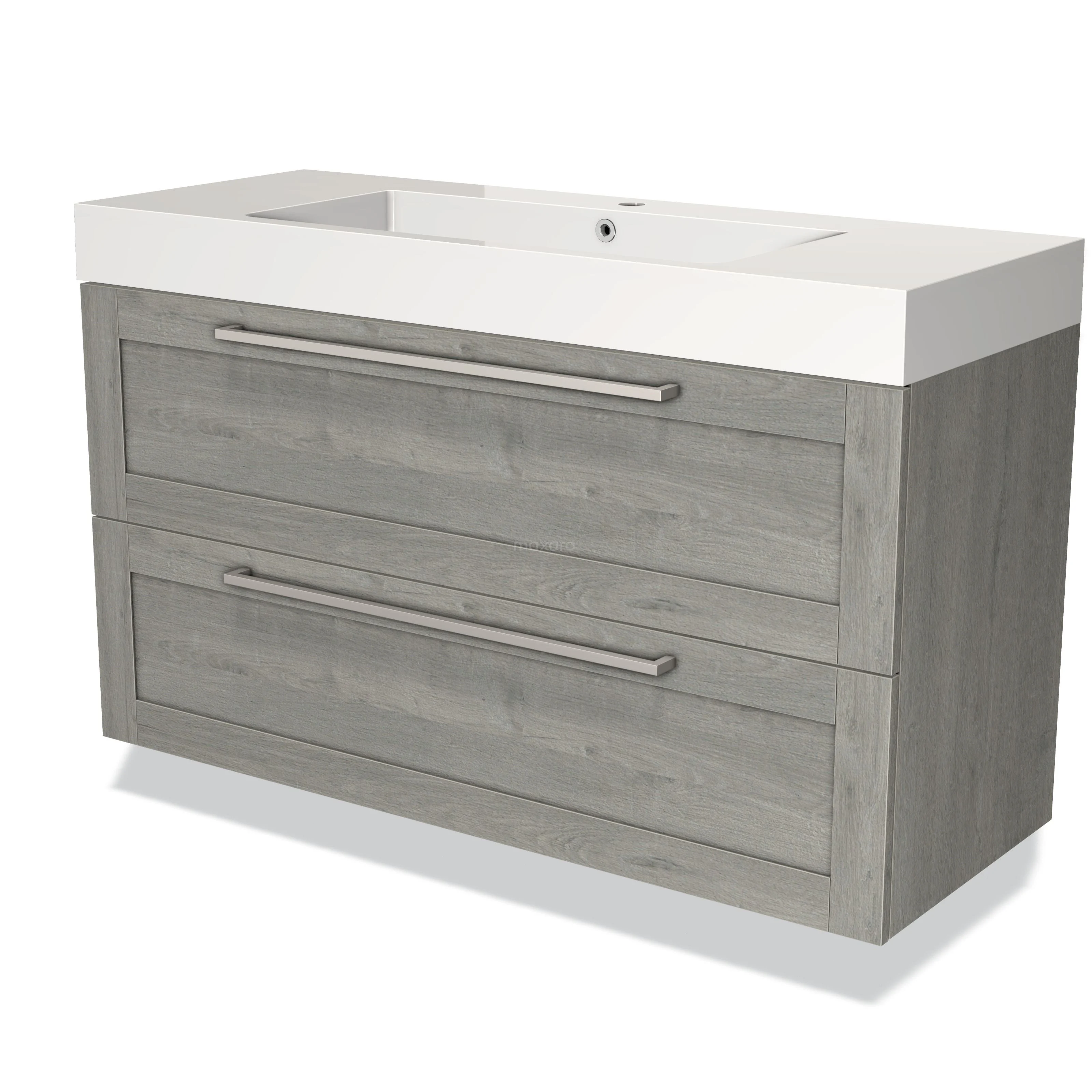 Modulo Vanity units with basin | 120 cm Grey oak Frame front Mineral marble 2 Stacked drawers