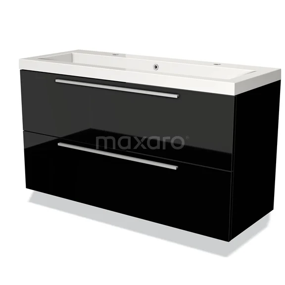 Modulo Vanity units with basin | 120 cm High-gloss black Flat front Mineral marble 2 Stacked drawers