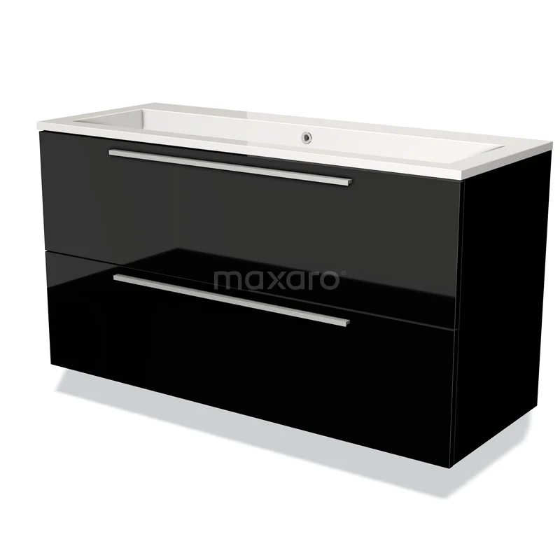 Modulo Vanity units with basin | 120 cm High-gloss black Flat front Mineral marble 2 Stacked drawers
