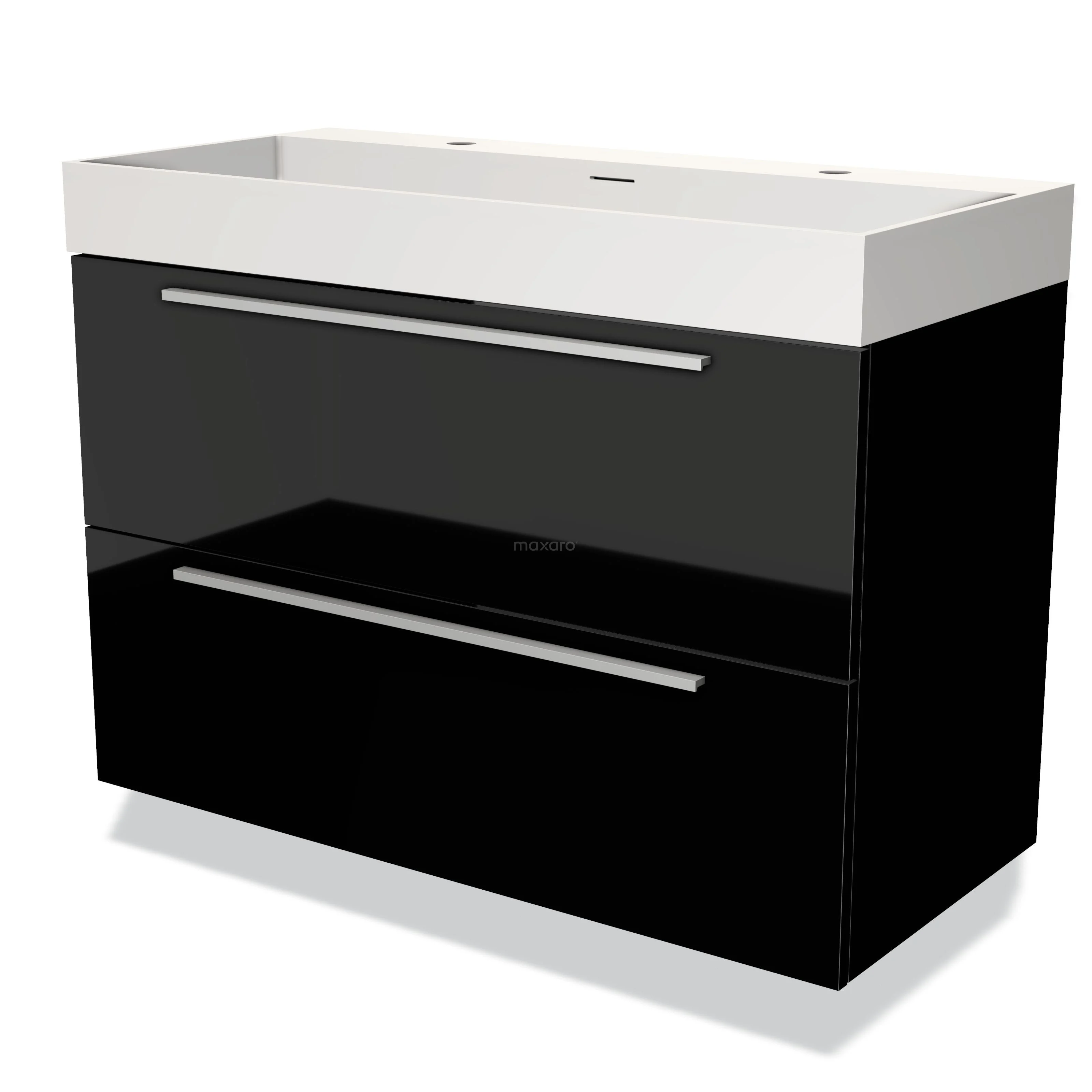 Modulo Vanity units with basin | 120 cm High-gloss black Flat front Solid surface 2 Stacked drawers