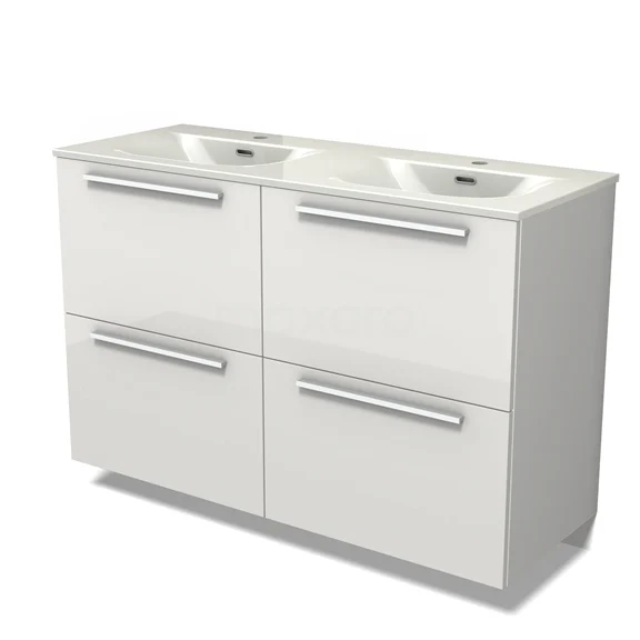 Modulo Vanity units with basin | 120 cm High-gloss white Flat front Ceramic 4 high drawers
