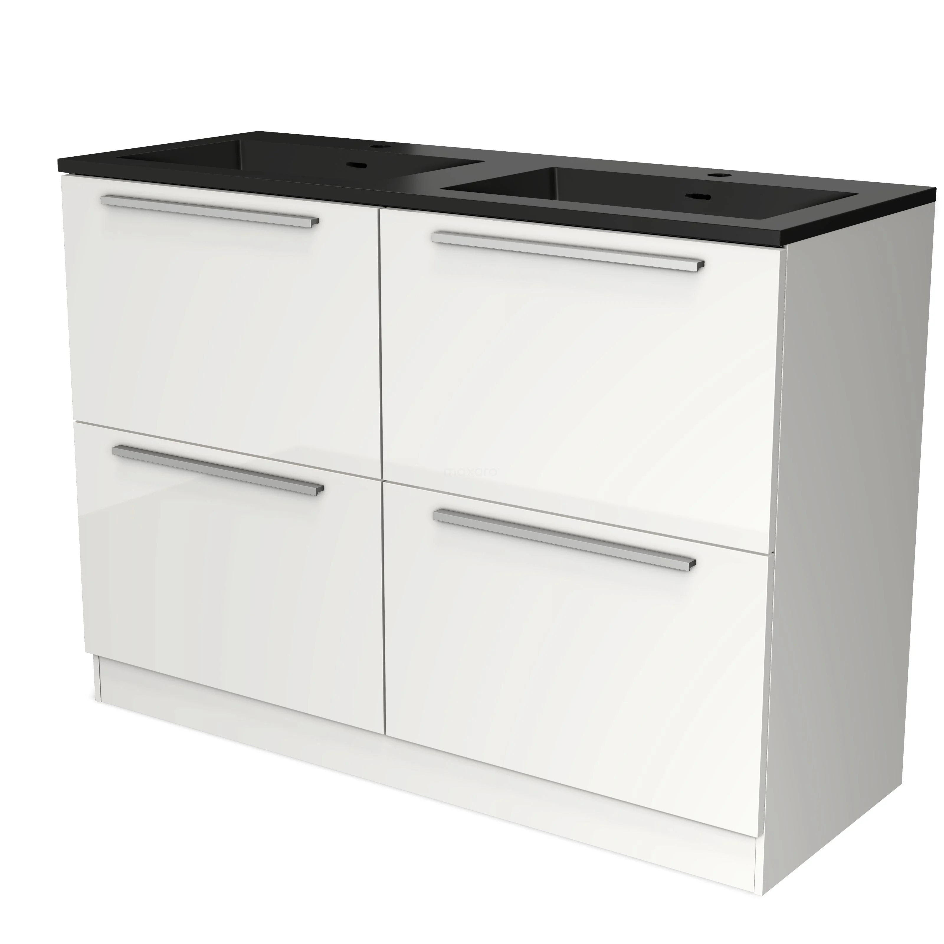 Modulo Vanity units with basin | 120 cm High-gloss white Flat front Quartz 4 standing high drawers
