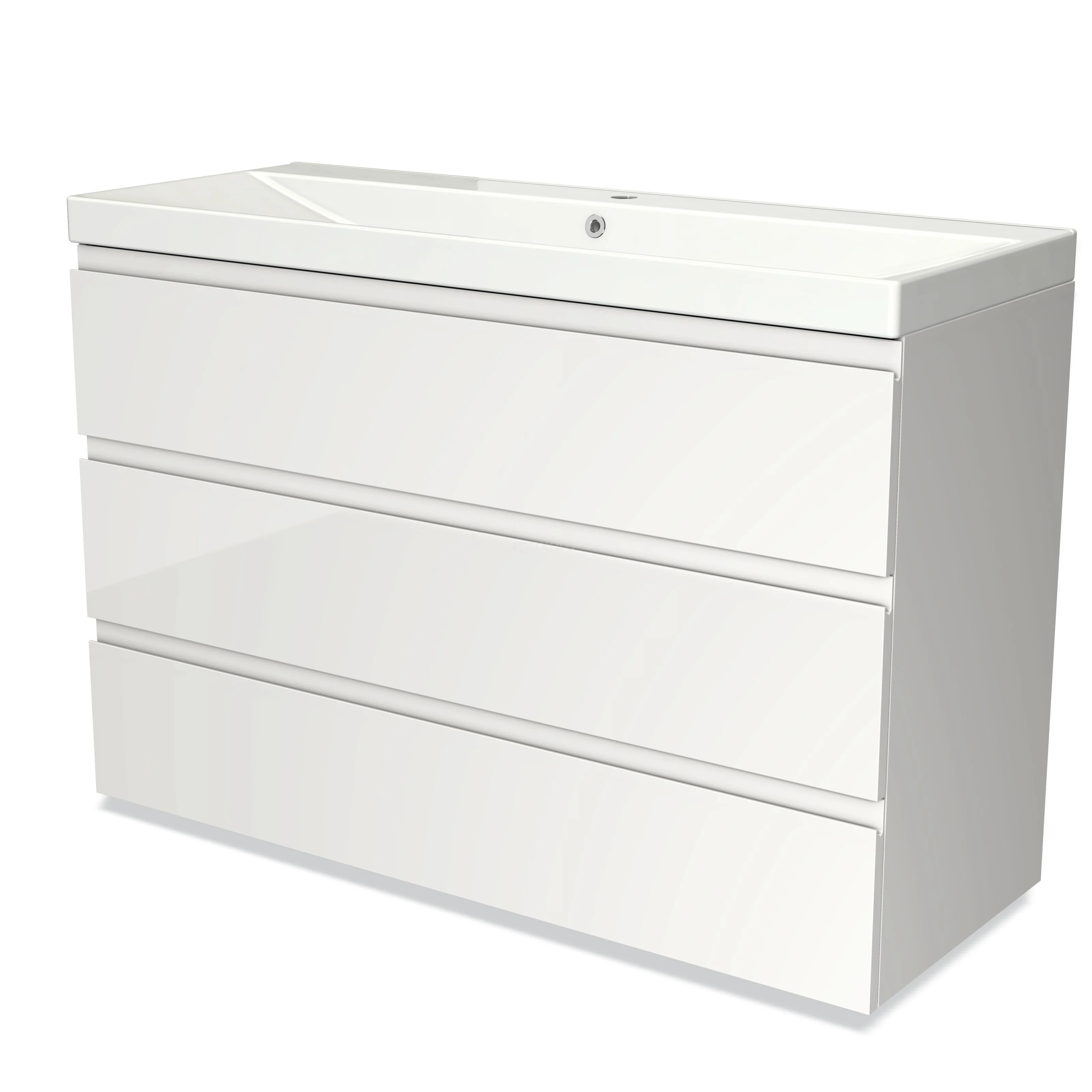 Stylish design The stylish design makes this bathroom unit the eye-catcher of your bathroom. The lower cabinet features a handleless front and has a high-gloss white finish. This colour has a modern appeal and gives the unit a fresh look and feel. In addition, the handleless front provides a sleek touch. nan...