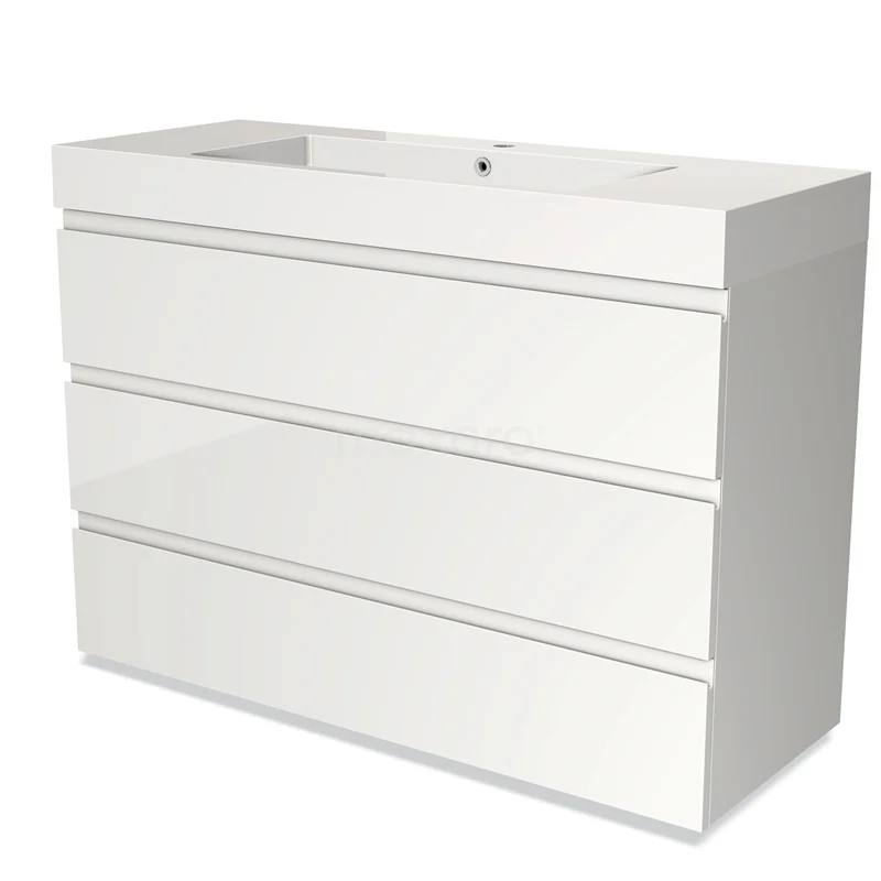 Undercabinet with spacious drawers The base cabinet is equipped with 3 drawers, providing space for all your bathroom utensils. Thanks to the soft open and close system, the drawers open and close silently. Moreover, they are extra high and fully extendable. Furthermore, the unit has a smart siphon cut-out. This allows you to make optimal use of the available space.