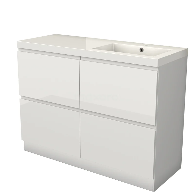 Modulo Vanity units with basin | 120 cm High-gloss white Handle-less front Mineral marble 4 standing high drawers