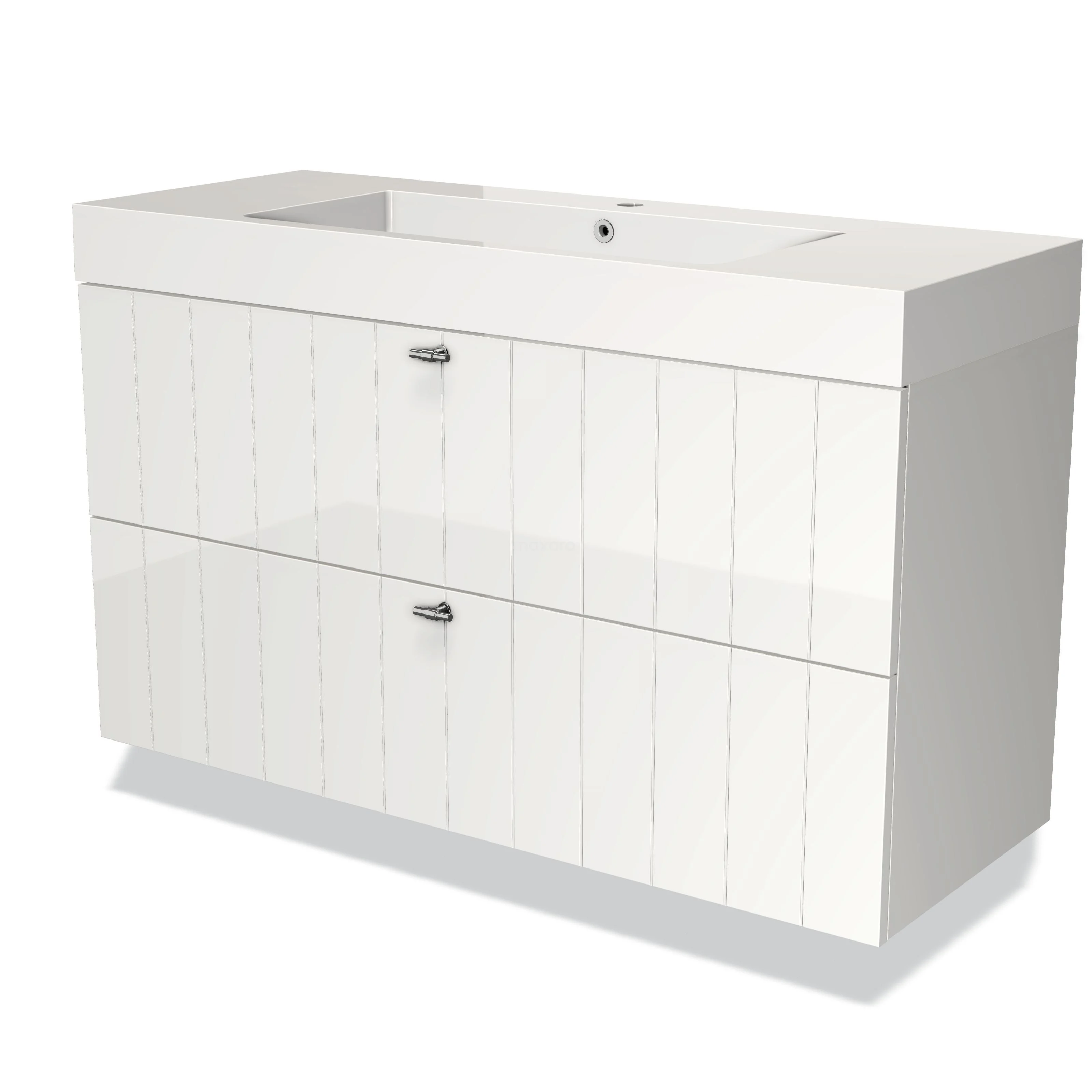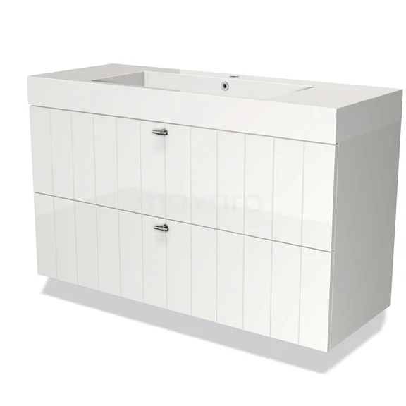 Modulo Vanity units with basin | 120 cm High-gloss white Slat front Mineral marble 2 Stacked drawers