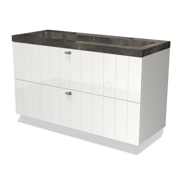 Modulo Vanity units with basin | 120 cm High-gloss white Slat front Natural stone 2 Stacked drawers