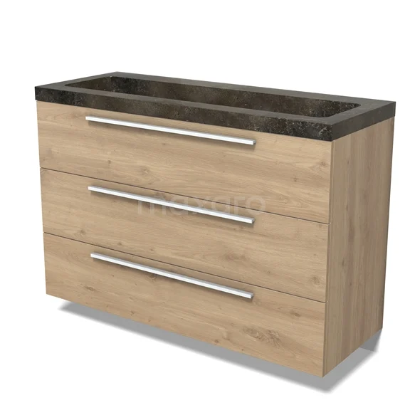 Modulo Vanity units with basin | 120 cm Light brown oak Flat front Natural stone 3 drawers