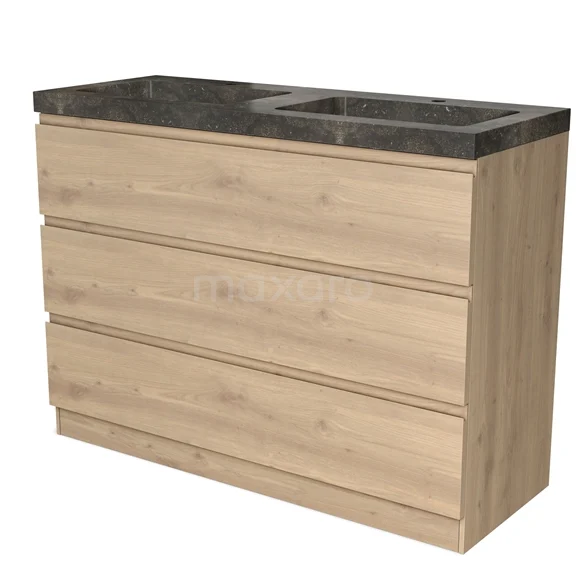Modulo Vanity units with basin | 120 cm Light brown oak Handle-less front Natural stone 3 standing drawers