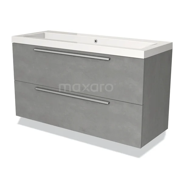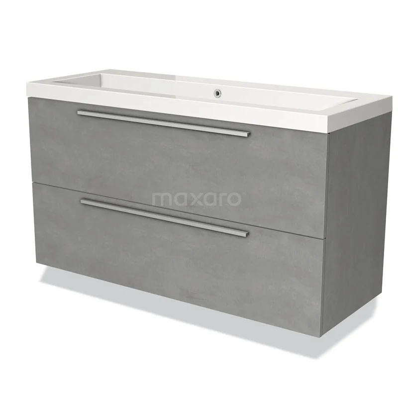 Modulo Vanity units with basin | 120 cm Light grey concrete Flat front Mineral marble 2 Stacked drawers