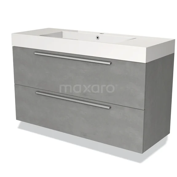Modulo Vanity units with basin | 120 cm Light grey concrete Flat front Mineral marble 2 Stacked drawers