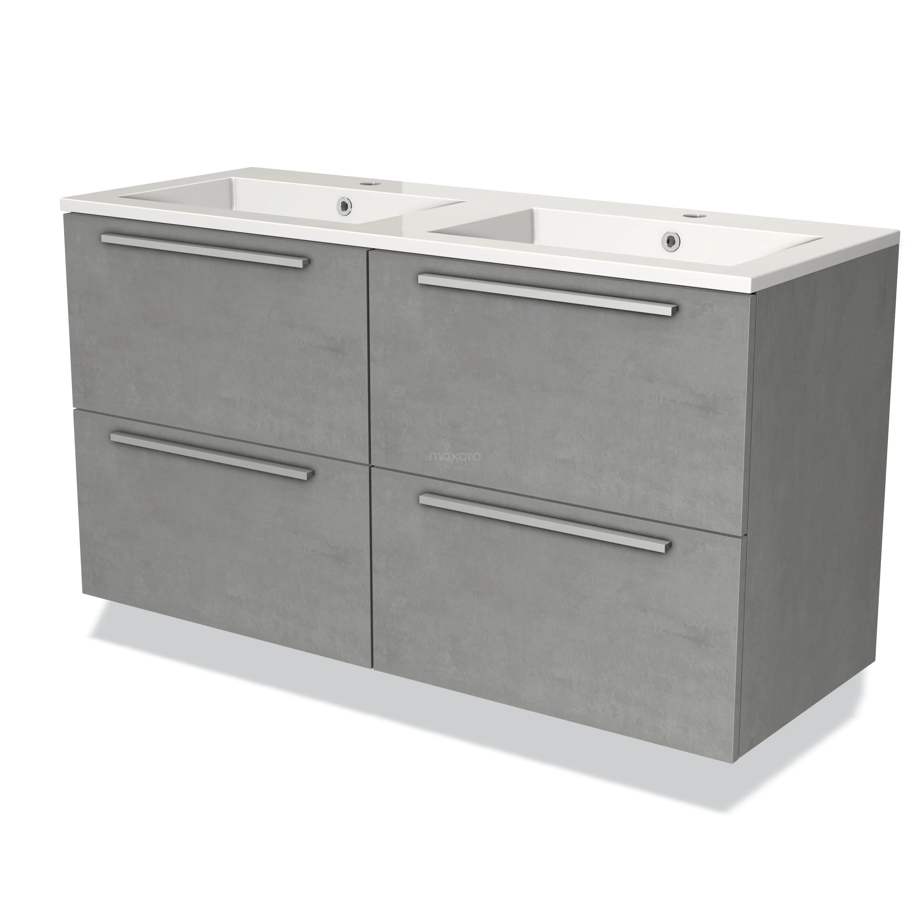 Modulo Vanity units with basin | 120 cm Light grey concrete Flat front Mineral marble 4 drawers