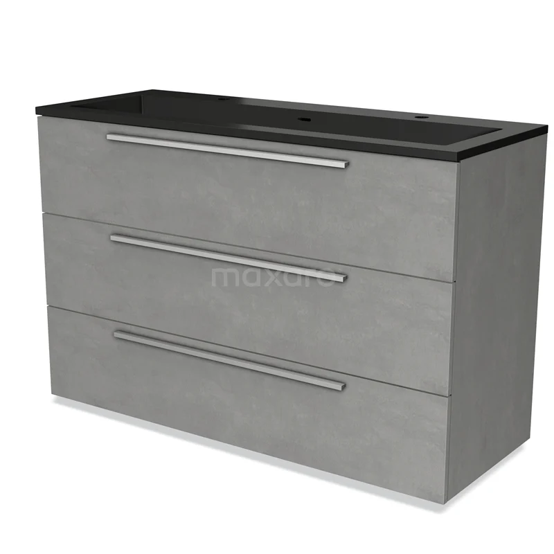 Modulo Vanity units with basin | 120 cm Light grey concrete Flat front Quartz 3 drawers