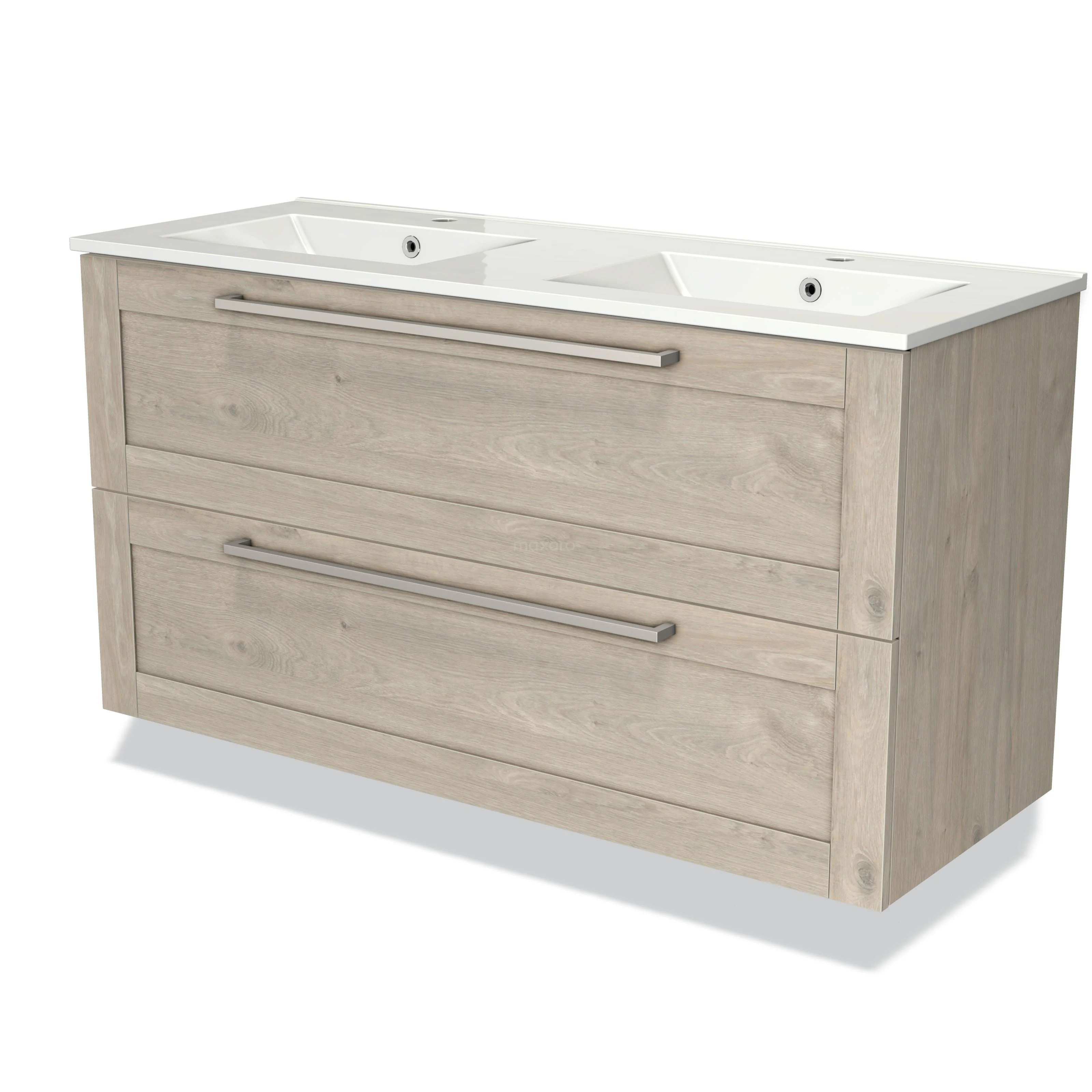 Modulo Vanity units with basin | 120 cm Light grey oak Frame front Ceramic 2 Stacked drawers