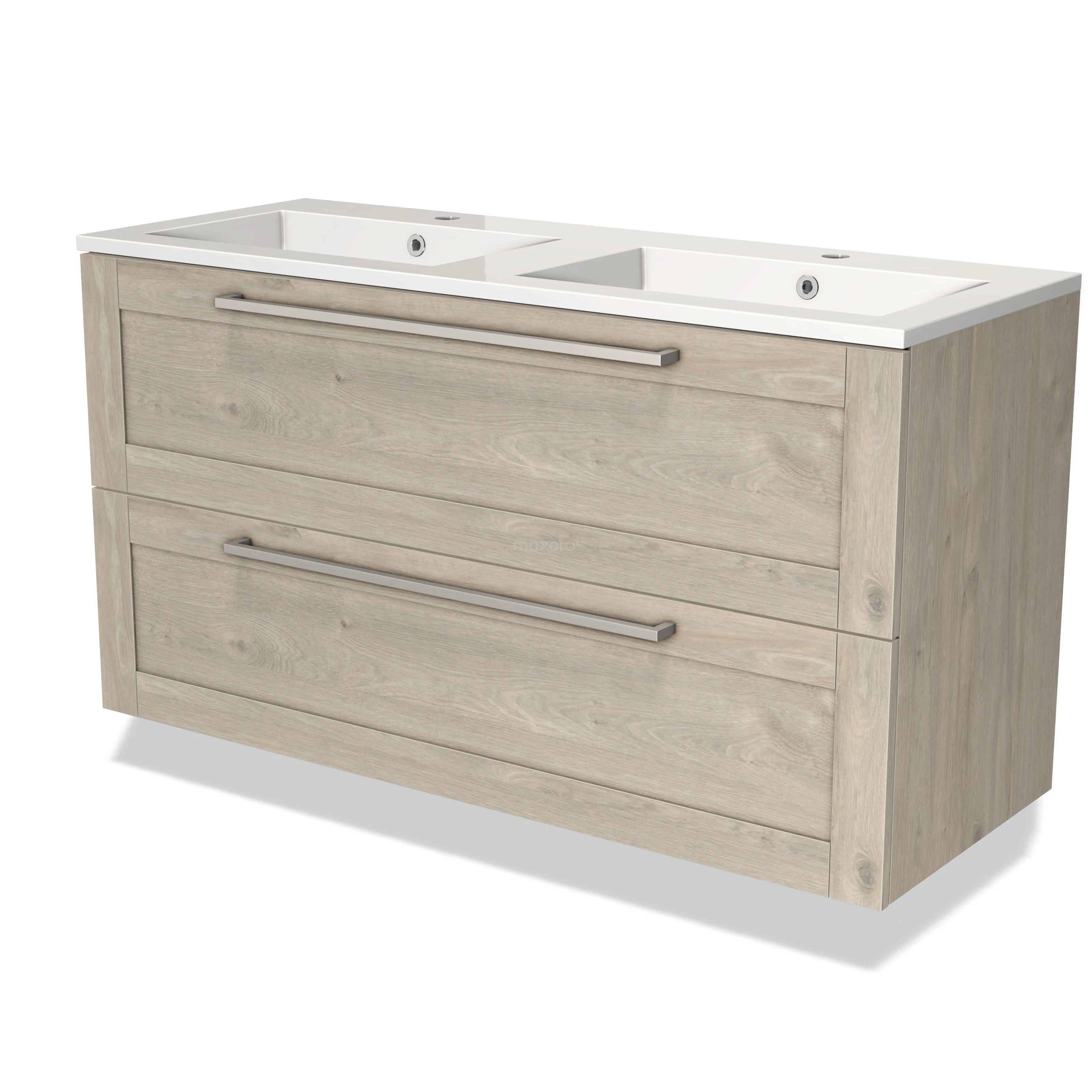 Modulo Vanity units with basin | 120 cm Light grey oak Frame front Mineral marble 2 Stacked drawers