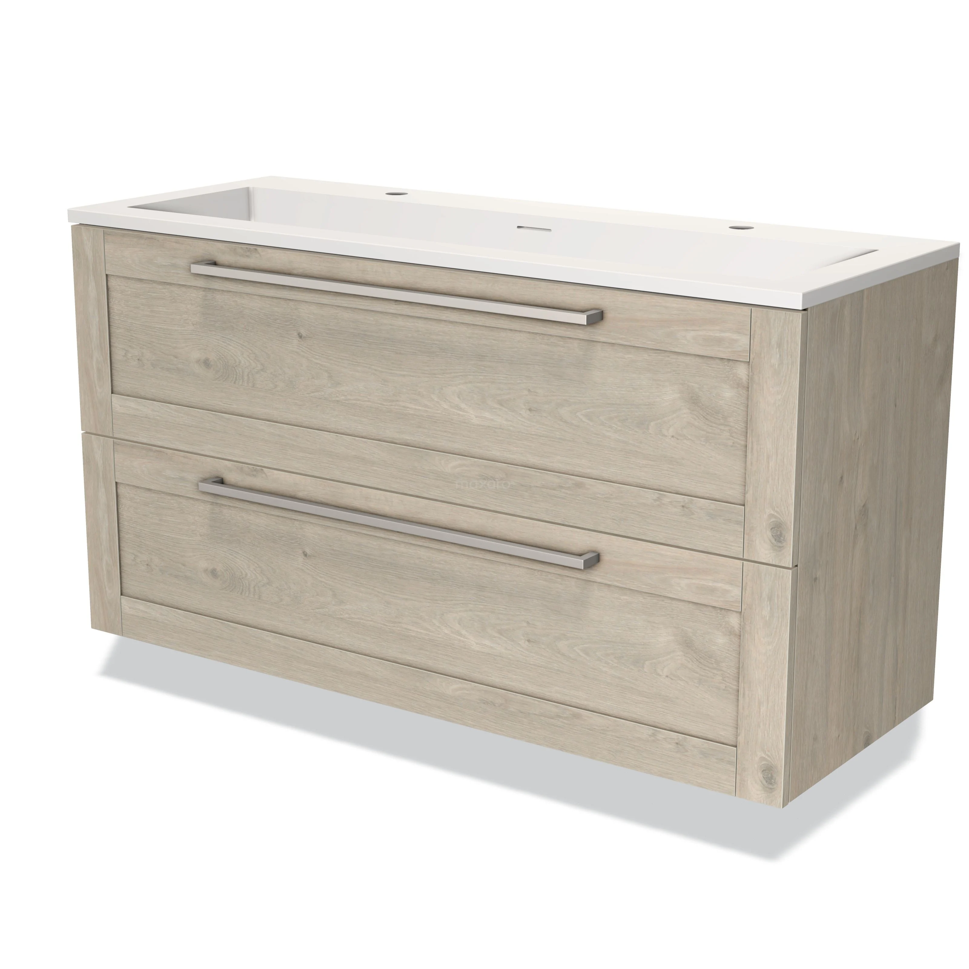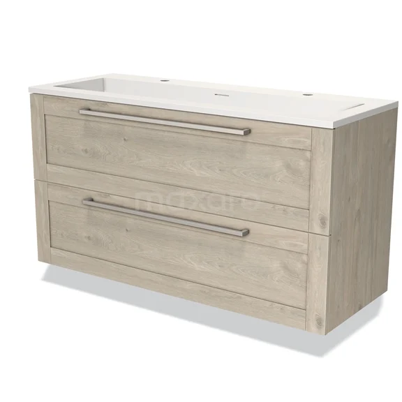 Modulo Vanity units with basin | 120 cm Light grey oak Frame front Solid surface 2 Stacked drawers