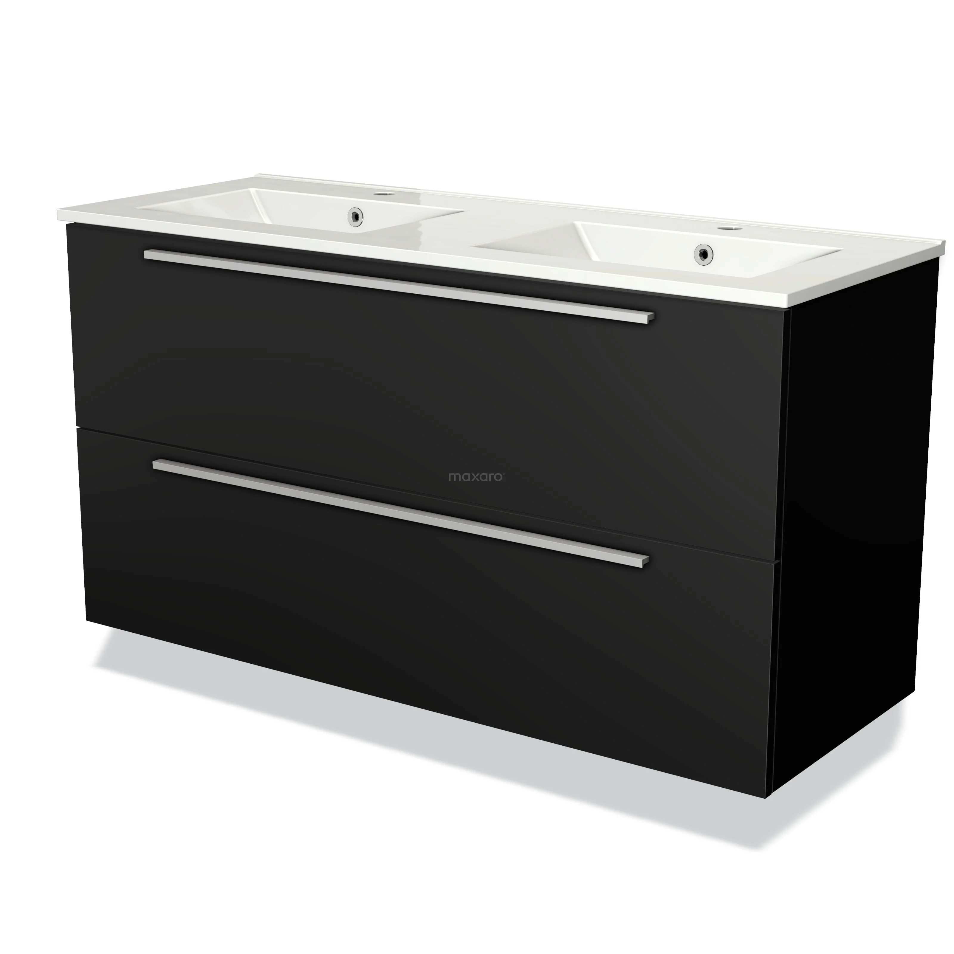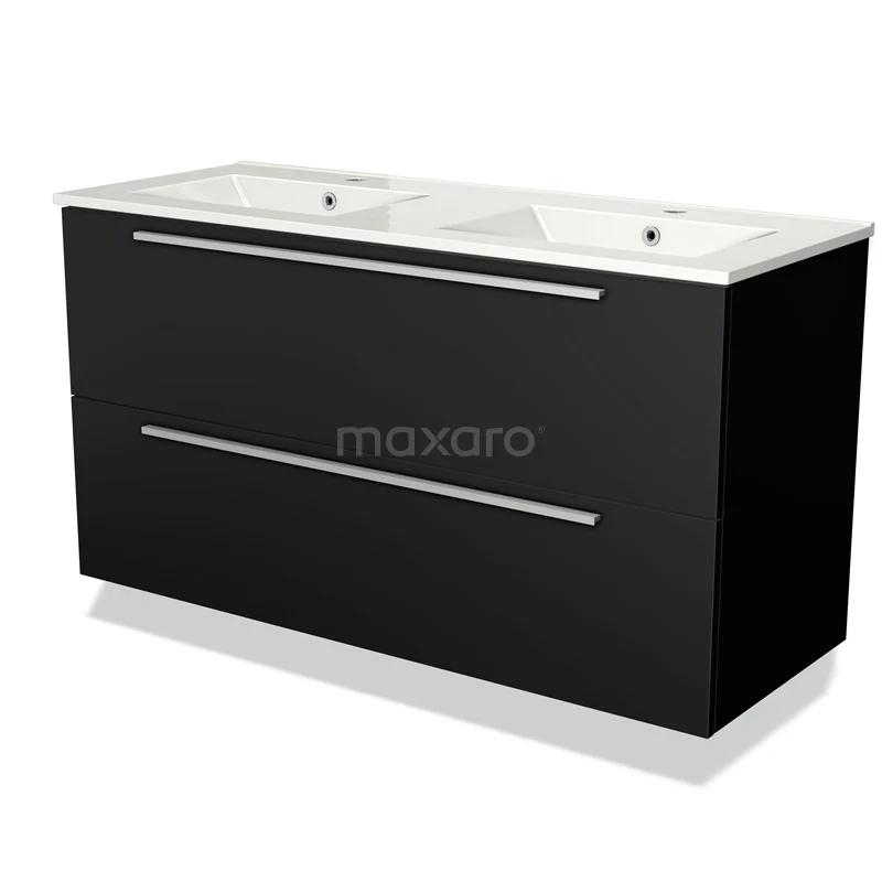 Modulo Vanity units with basin | 120 cm Matte black Flat front Ceramic 2 Stacked drawers