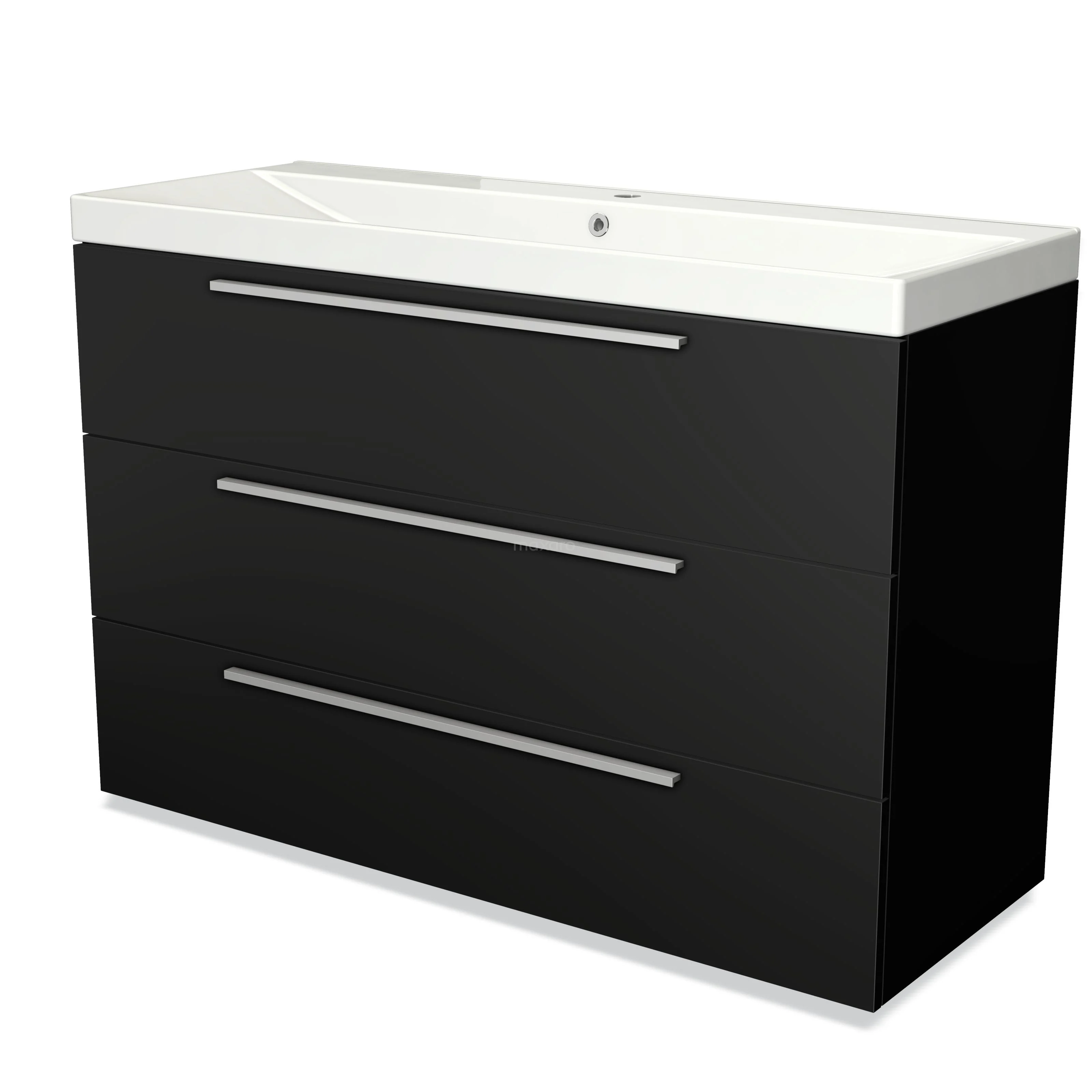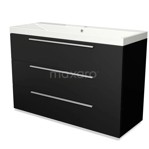 Modulo Vanity units with basin | 120 cm Matte black Flat front Ceramic 3 drawers