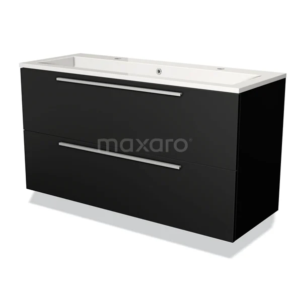 Modulo Vanity units with basin | 120 cm Matte black Flat front Mineral marble 2 Stacked drawers