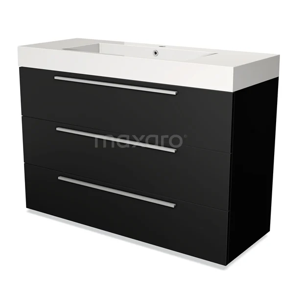 Modulo Vanity units with basin | 120 cm Matte black Flat front Mineral marble 3 drawers