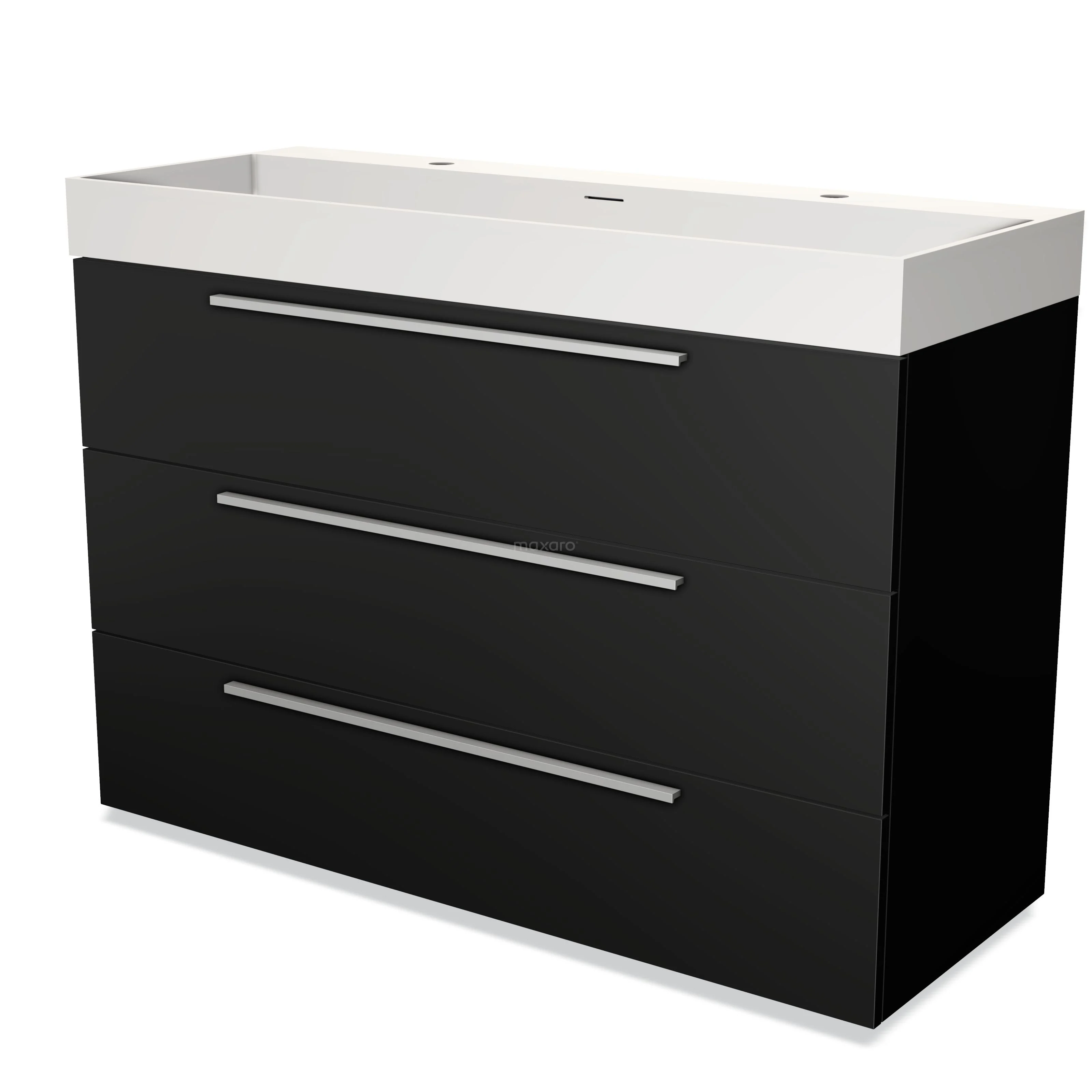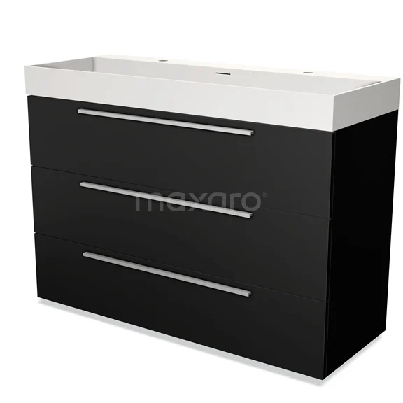Modulo Vanity units with basin | 120 cm Matte black Flat front Solid surface 3 drawers