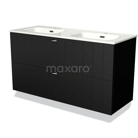 Modulo Vanity units with basin | 120 cm Matte black Slat front Ceramic 2 Stacked drawers