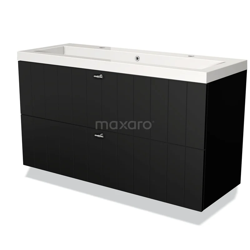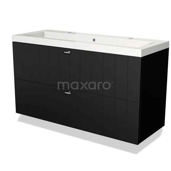 Modulo Vanity units with basin | 120 cm Matte black Slat front Mineral marble 2 Stacked drawers