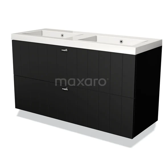 Modulo Vanity units with basin | 120 cm Matte black Slat front Mineral marble 2 Stacked drawers