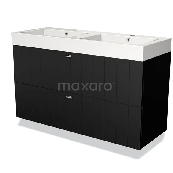 Modulo Vanity units with basin | 120 cm Matte black Slat front Mineral marble 2 Stacked drawers