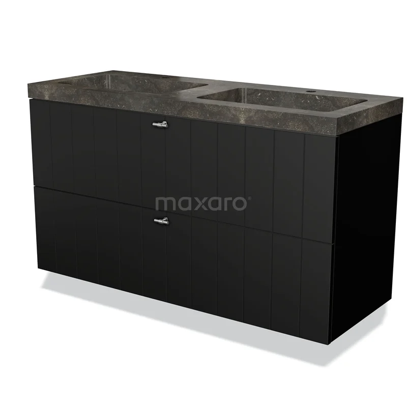 Modulo Vanity units with basin | 120 cm Matte black Slat front Natural stone 2 Stacked drawers