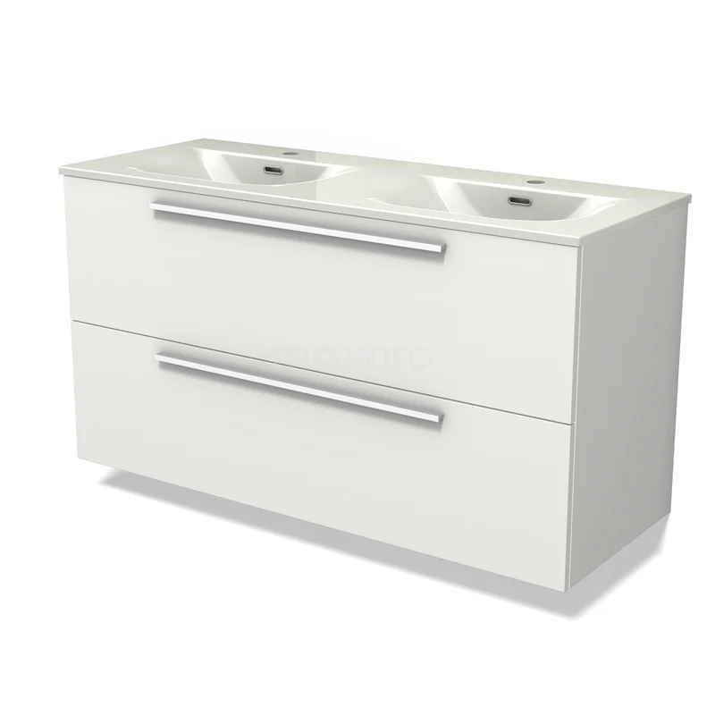 Modulo Vanity units with basin | 120 cm Matte white Flat front Ceramic 2 Stacked drawers