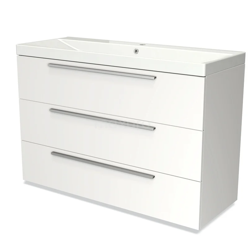 Modulo Vanity units with basin | 120 cm Matte white Flat front Ceramic 3 drawers