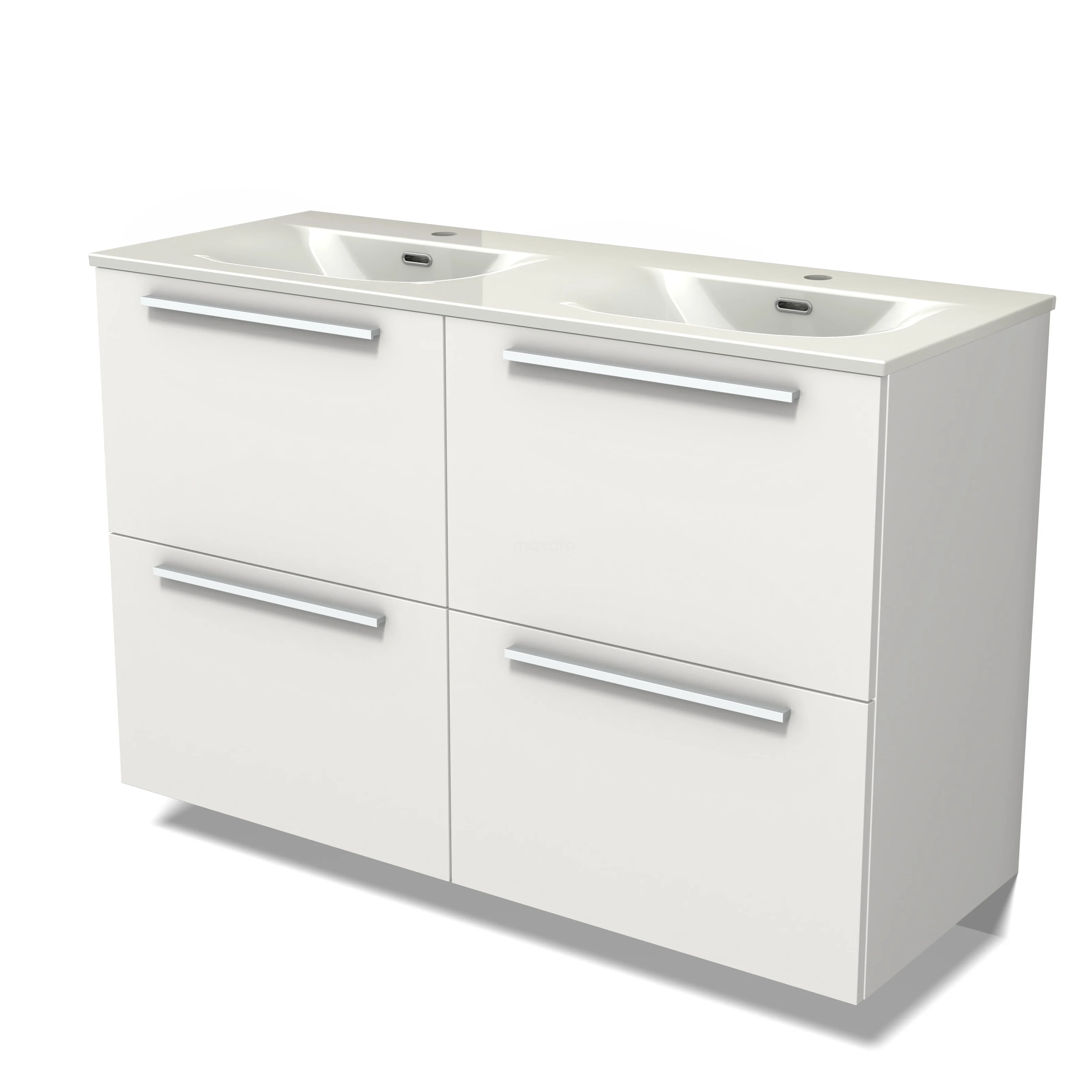 Modulo Vanity units with basin | 120 cm Matte white Flat front Ceramic 4 high drawers