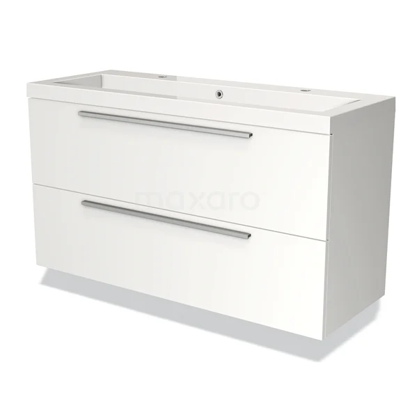 Modulo Vanity units with basin | 120 cm Matte white Flat front Mineral marble 2 Stacked drawers
