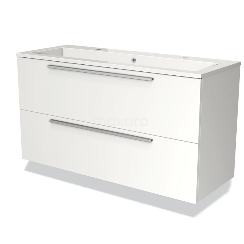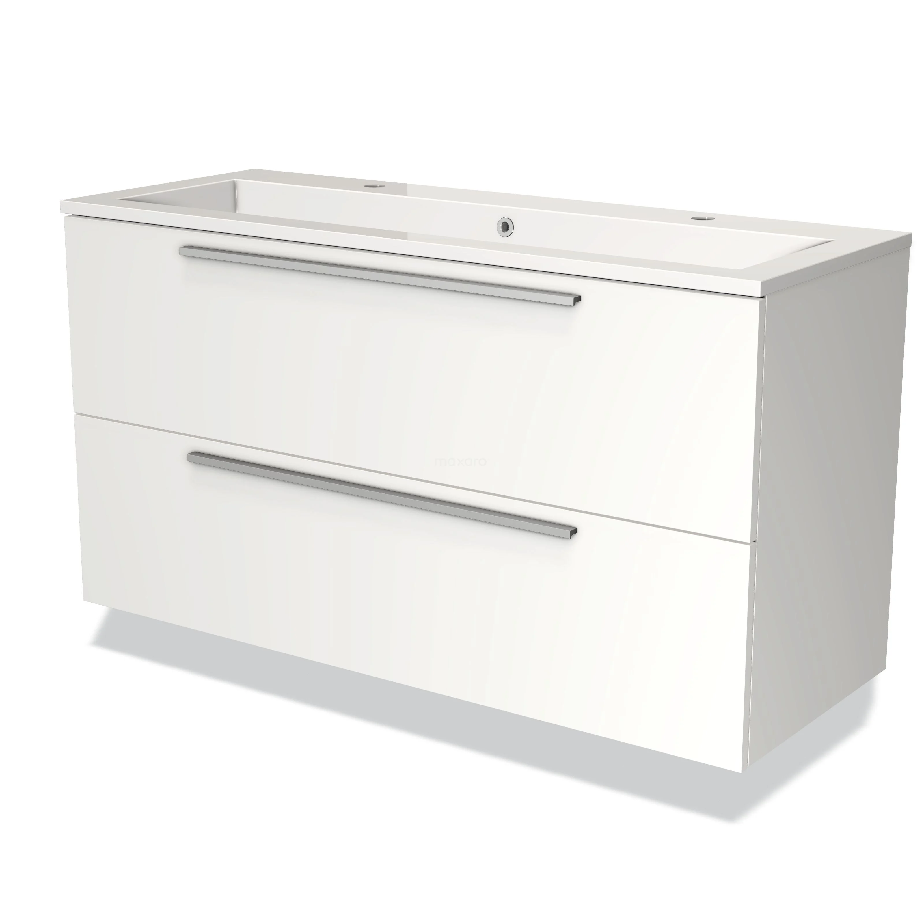 Modulo Vanity units with basin | 120 cm Matte white Flat front Mineral marble 2 Stacked drawers
