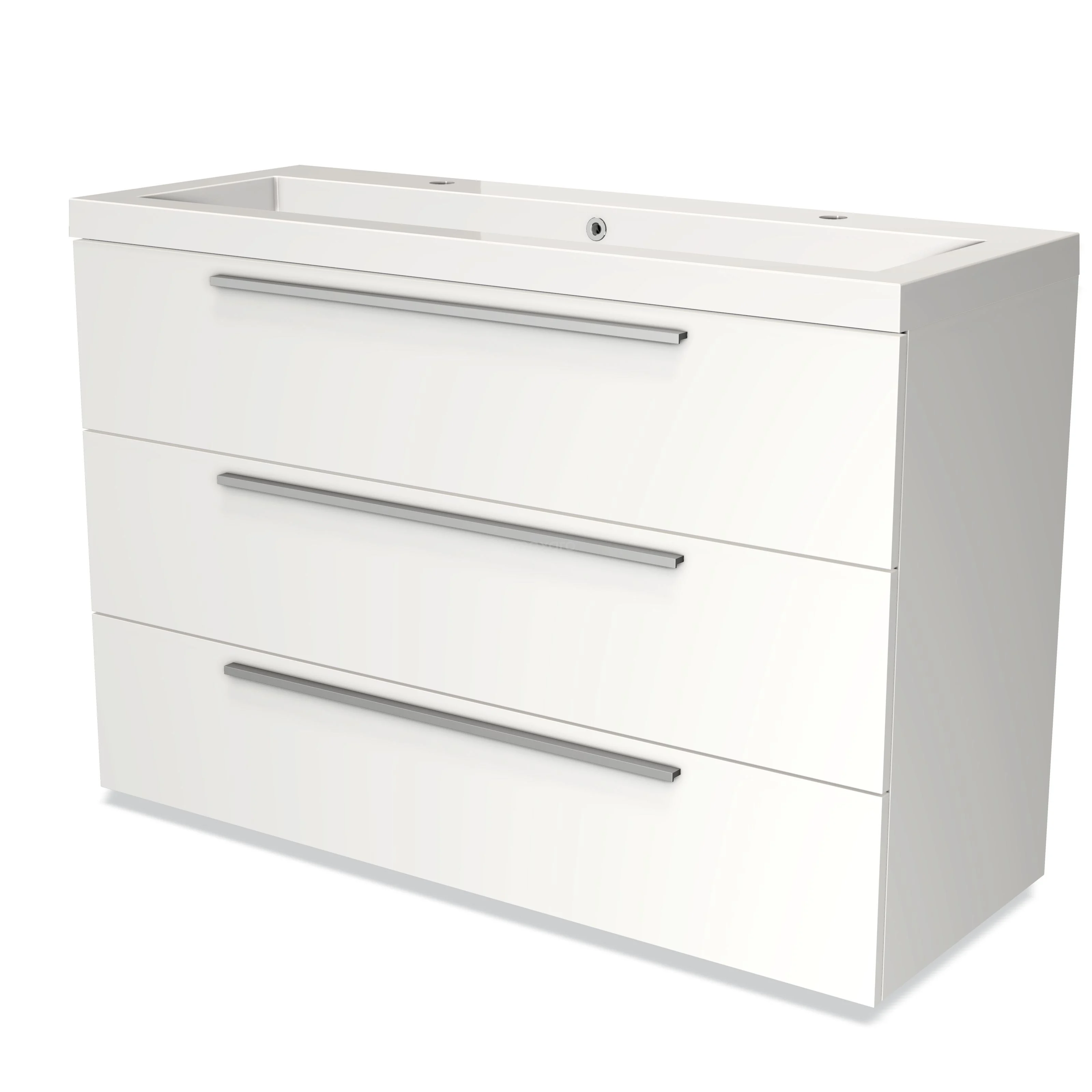 Modulo Vanity units with basin | 120 cm Matte white Flat front Mineral marble 3 drawers
