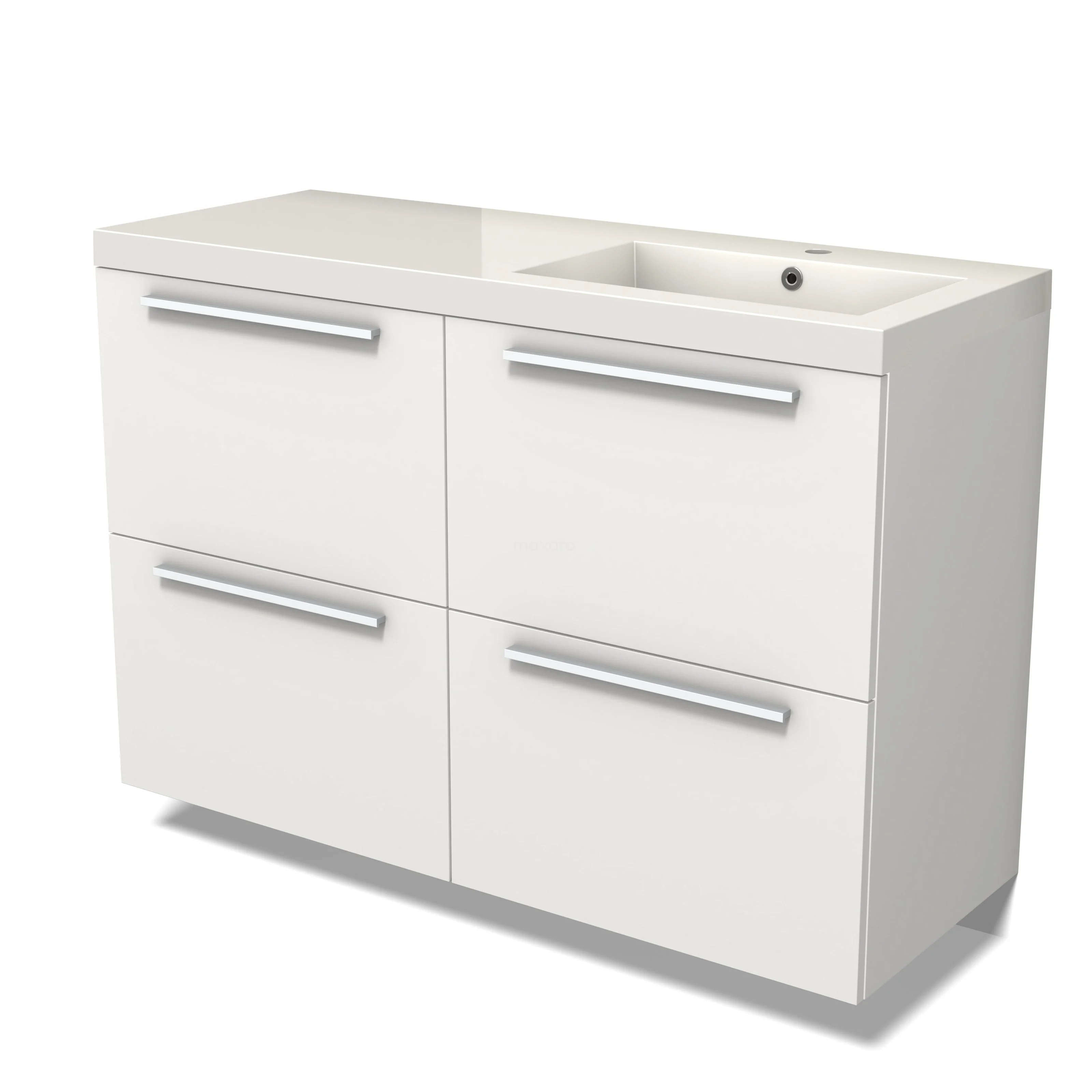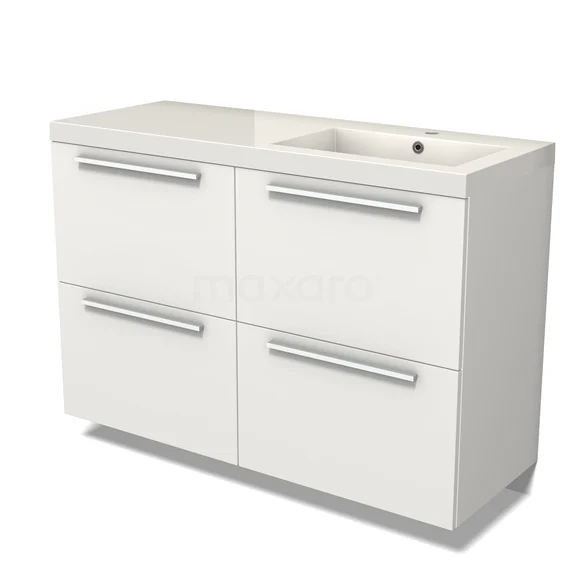 Modulo Vanity units with basin | 120 cm Matte white Flat front Mineral marble 4 high drawers