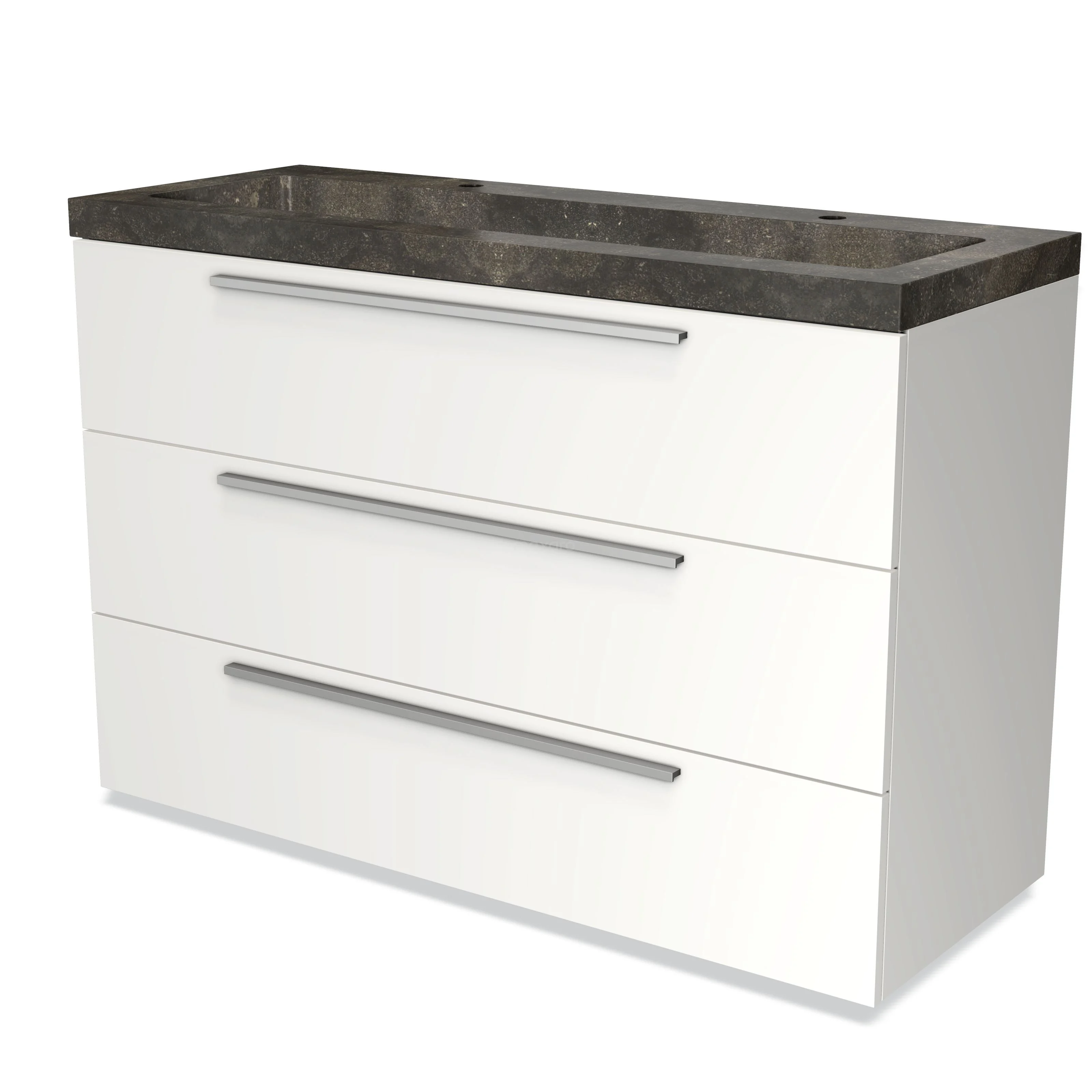 Modulo Vanity units with basin | 120 cm Matte white Flat front Natural stone 3 drawers