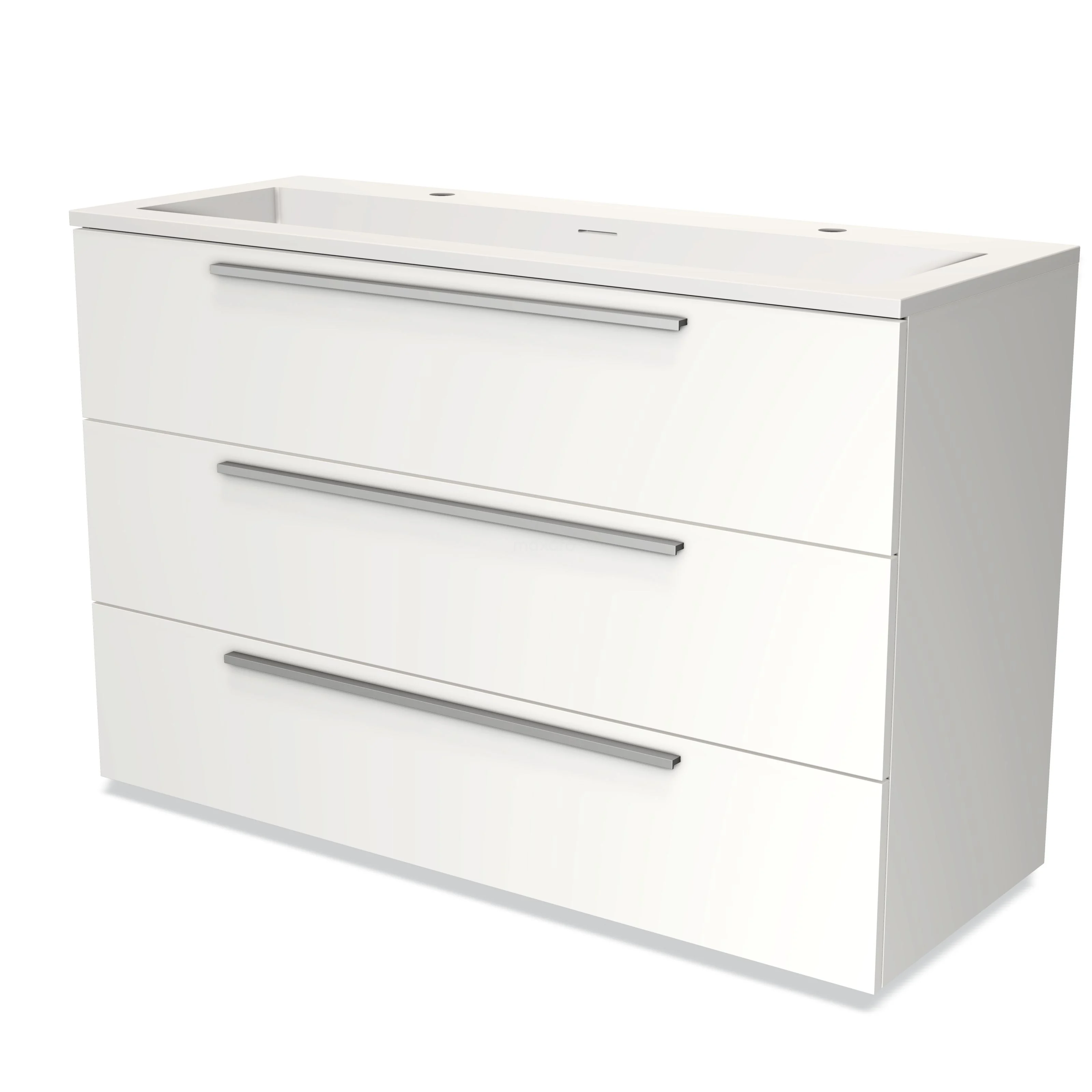 Modulo Vanity units with basin | 120 cm Matte white Flat front Solid surface 3 drawers