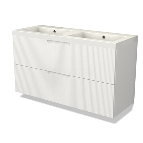 Modulo Vanity units with basin | 120 cm Matte white Line front Mineral marble 2 Stacked drawers